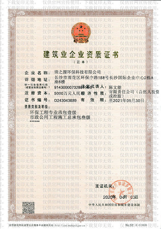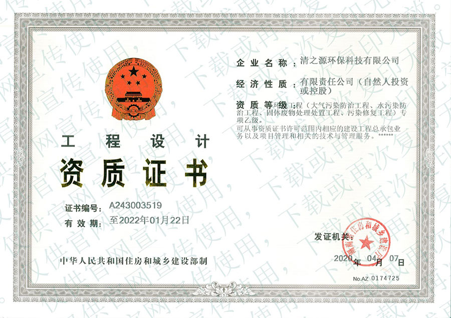 污染治理資質(zhì)證書—工業(yè)廢水處理二級(jí)